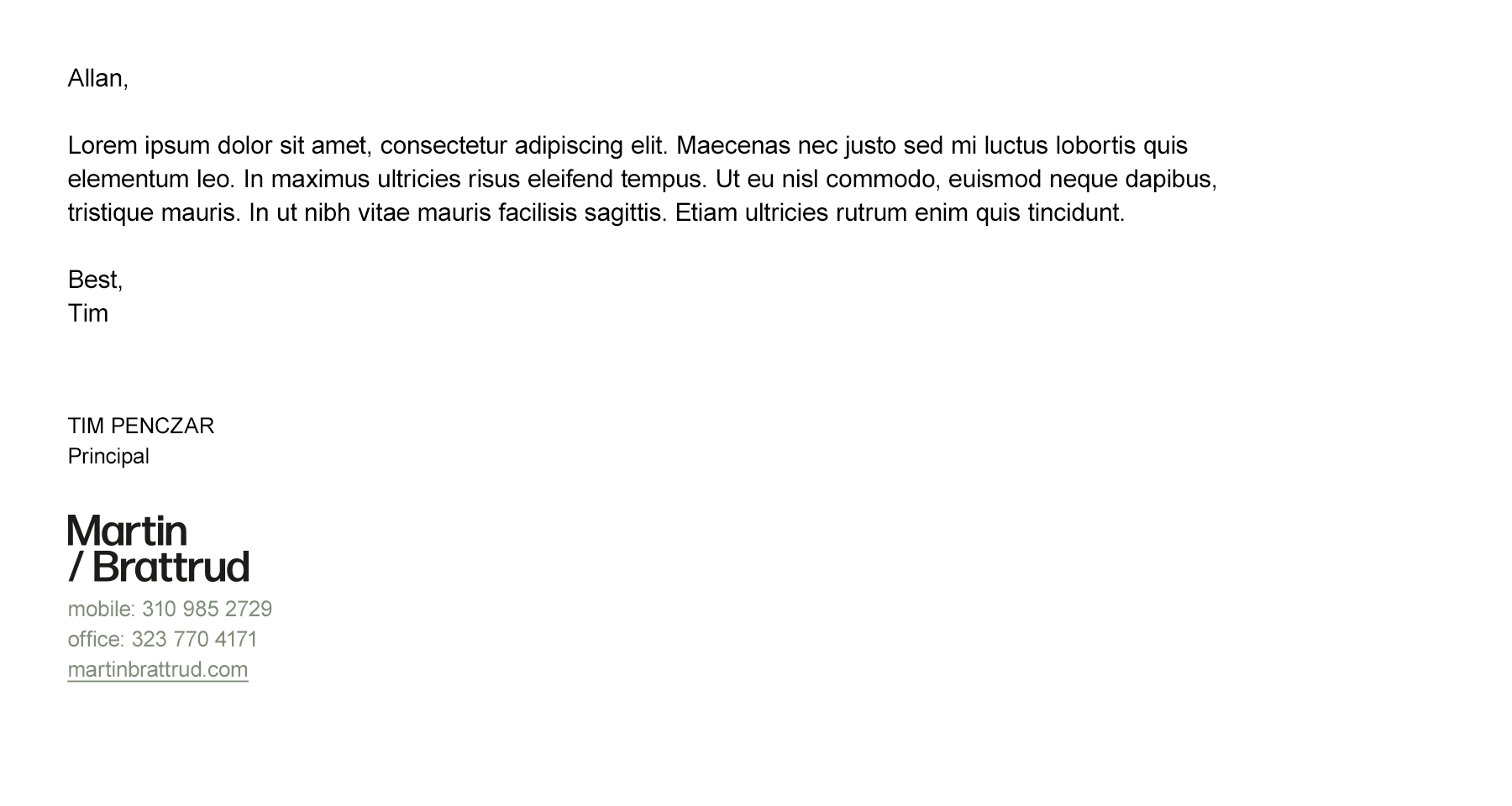 Consult IT for deploying our corporate signature in your email client personalized with your details. The font used in the body of the email is Arial.
